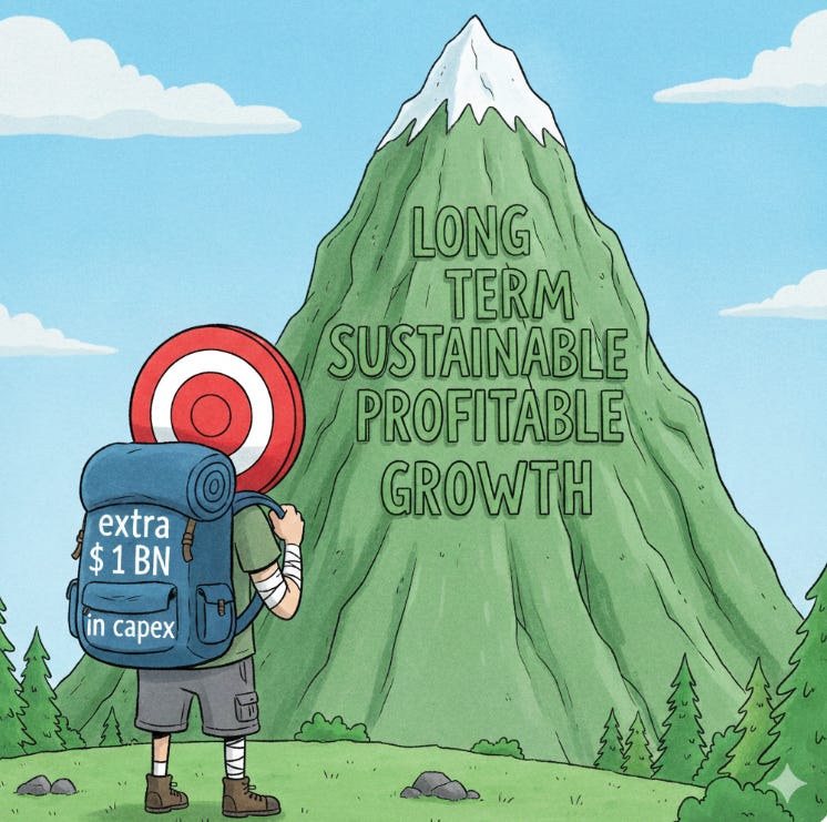 In 2026, the company will make major change to its “floor pad” & will spend an incremental $ 1 billion in capital (capex), a 25% increase from 2024 to fund the changes noted above.